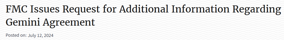 RFAI的公告在《联邦公报》上发布后,为期15天的公众意见征询期将开始。如果FMC没有采取这一审查程序,双子星合作协议将于2024年7月15日(下周一)生效。